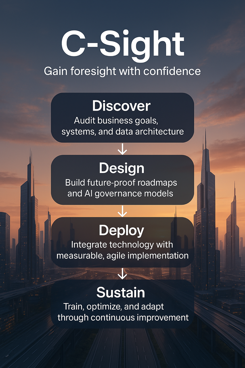 - Sustain – Train, optimise, and adapt through continuous improvement